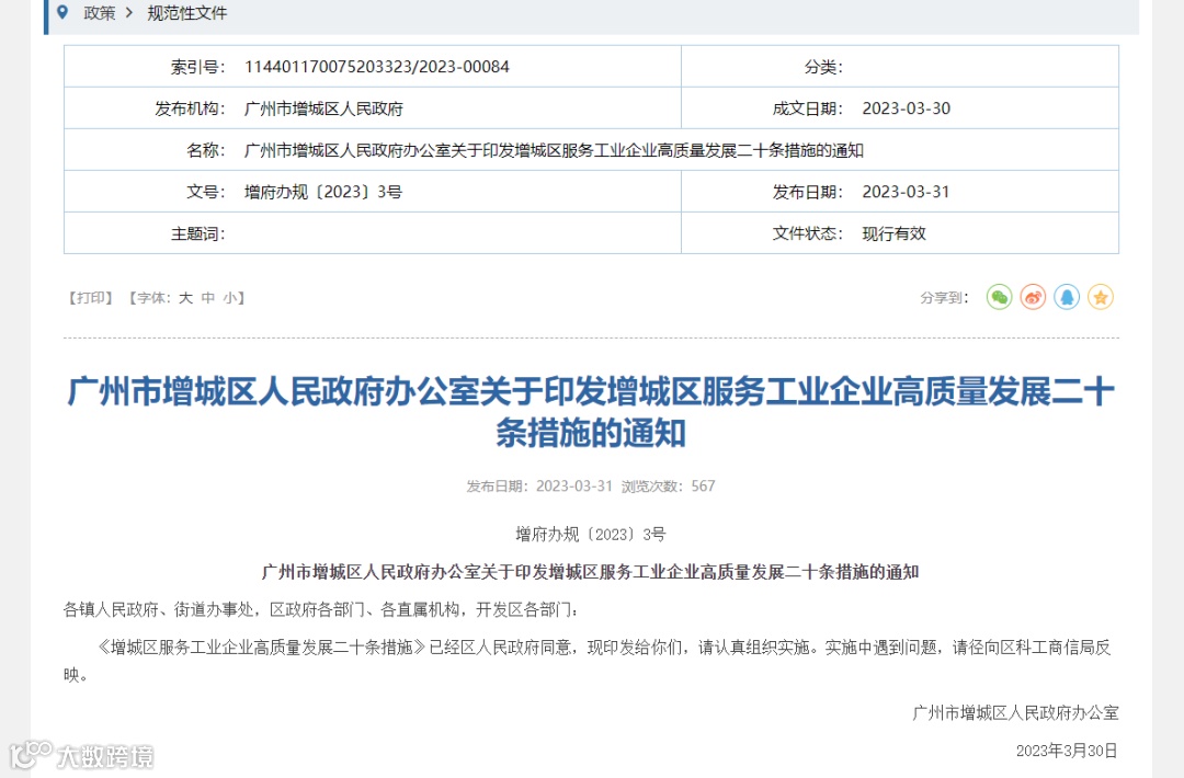 日前,增城区人民政府办公室印发《增城区服务工业企业高质量发展二十条措施》(简称《措施》)。该政策主要围绕 鼓励企业提质增效、鼓励企业技术升级、帮助企业纾困解难、提升服务企业质效等四个方面提出二十条具体措施。通过 “接地气”的政策和 “真金白银”的奖补,进一步激发市场主体活力,巩固工业经济增长势头,助力增城高质量发展。