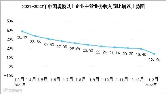 在工业生产加快、工业品出厂价格同比涨幅较高等因素共同作用下,工业企业销售较快增长。统计数据显示,1至2月份,规模以上工业企业营业收入同比增长13.9%,高于去年12月份1.6个百分点。全国规模以上工业企业利润同比增长5.0%,增速较2021年12月份回升0.8个百分点。