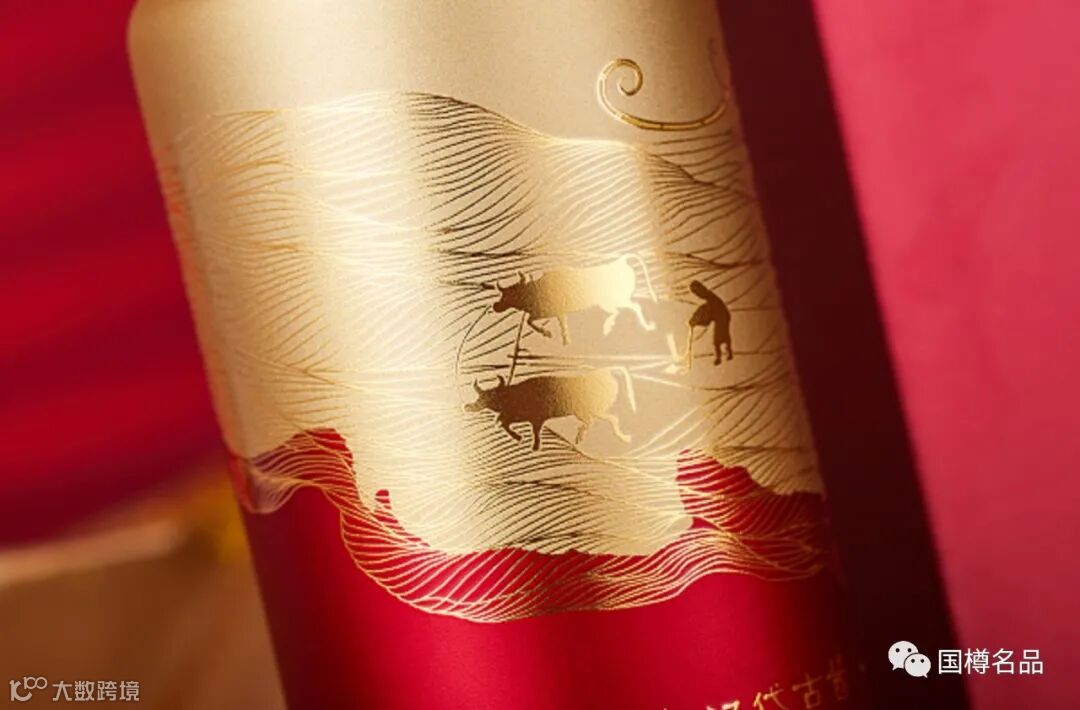 仁怀酱香酒·汉代古酱以古典雅金配复古韵红为主色调,瓶身将象征九五至尊身份和地位的飞龙纹融汇于瓶身左上边,寓意华夏文明一脉相承;底纹农耕山水犹如艺术与大地碰撞;曲尽其妙,绘《耕牛图》于内,美好希冀不言而喻。