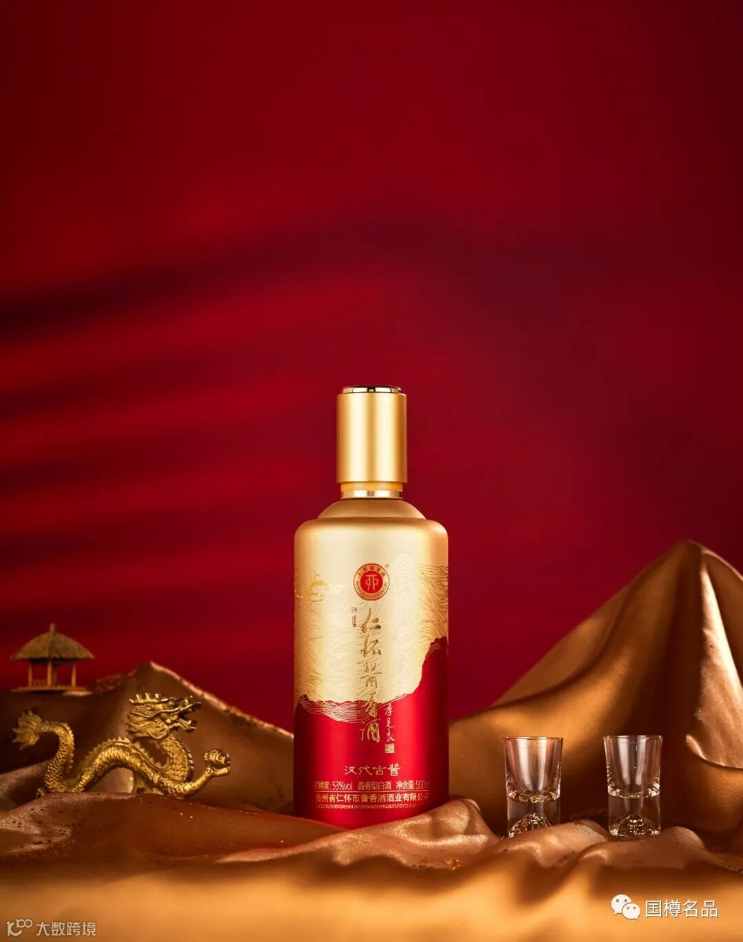 仁怀酱香酒·汉代古酱,外盒以古典雅金配复古韵红为主调,高贵中流露出中式复古格调。