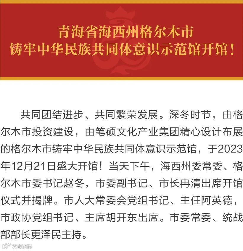 青海省海西州格尔木市铸牢中华民族共同体意识示范馆开馆!