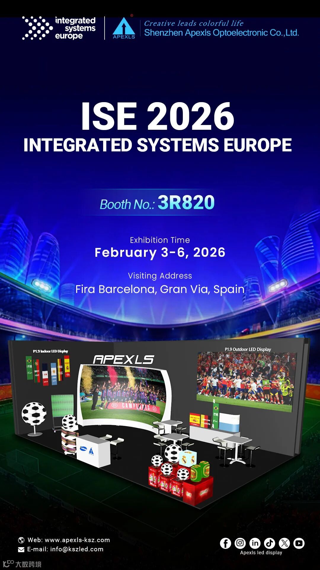 2026年2月3日,ISE展(欧洲视听技术与系统集成展)即将在西班牙巴塞罗那盛大开幕。康硕展携全矩阵LED显示产品及解决方案重磅亮相,为2026年全球化布局绚丽开篇。