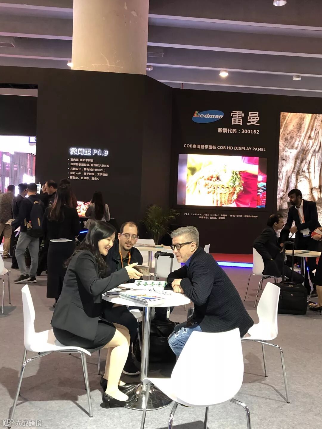 此次展会雷曼•康硕展展出了以易拉罐屏、球形屏、柔性组、玻璃屏、钻石屏为主的创意显示屏系列以及雷曼COB小间距系列。开展第二天,康硕展(11.2馆B01)展位客人川流不息,下面为大家带来展会前两天的精彩瞬间。