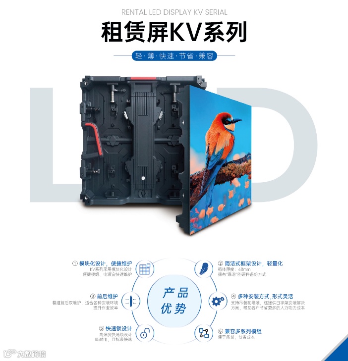 康硕展KV系列产品,采用轻量化设计理念,箱体、模组、电源模块化设计,安装快捷。500x500mm短箱体灵活度高,可弧形拼接方便打造各式舞台造型,可广泛应用于演唱会、电视台晚会、大型娱乐节目、商业展览活动等场所。