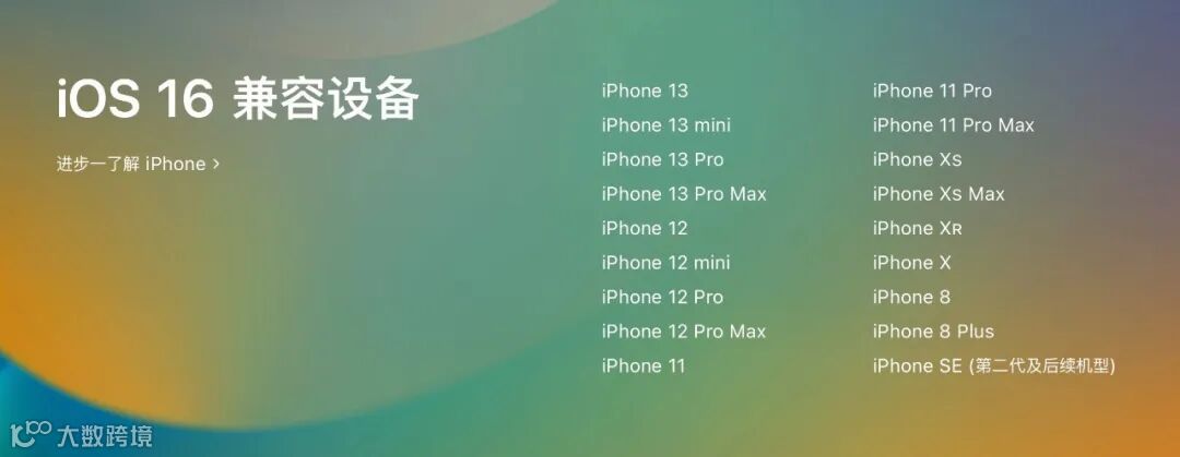 另外来看下iOS16支持升级的机型: