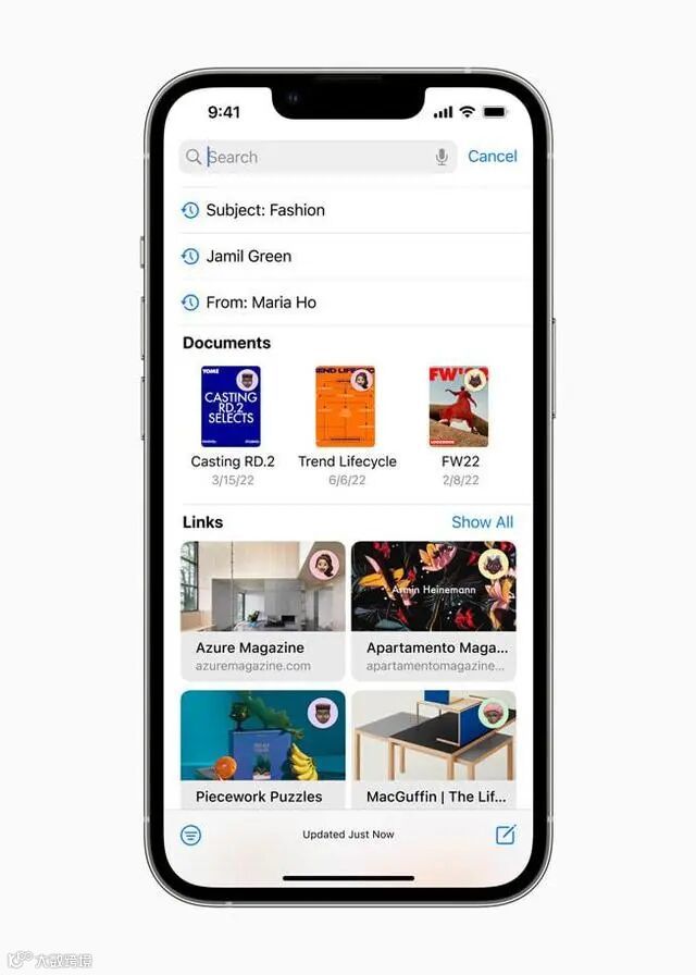● 聚焦搜索:iOS16可以在主屏幕底部启用聚焦搜索,搜索输入框会显示在屏幕中间。