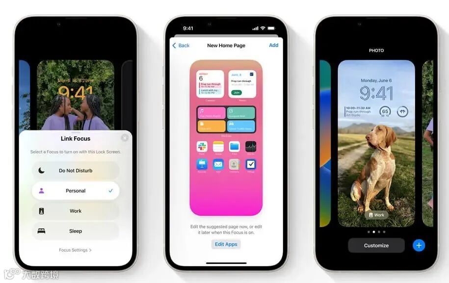 iOS 16 中,全新的专注模式功能的设置变得更简单了,并可与锁定屏幕进行关联,让用户能够为每种专注模式分别绑定不同的锁定屏幕墙纸和小组件。