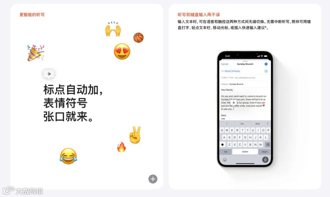 听写功能其实就是语音转文字功能,听写功能现在可以和键盘同时使用,无缝切换。并且能够自动识别添加标点符号和表情。