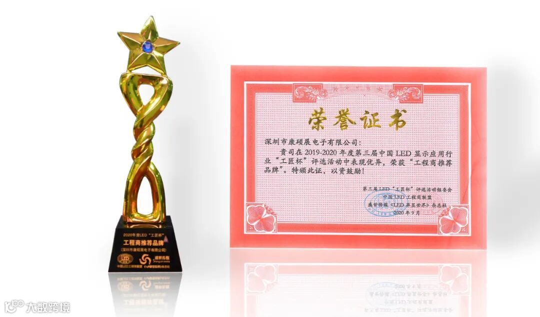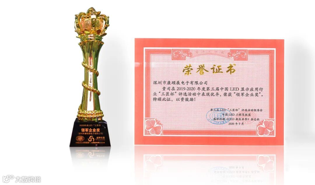 2020年9月1日,第三届“工匠杯”中国LED显示应用行业评选活动(2019-2020年度)颁奖典礼在深圳恒丰海悦酒店隆重举行。经评委评审和网络投票,雷曼康硕展斩获,第三届工匠杯“领军企业奖”和“工程商推荐品牌奖”。