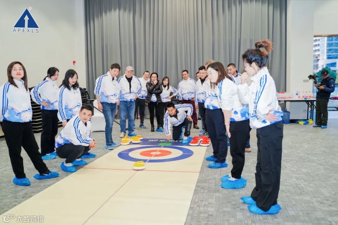 在教练讲解下,大家首先了解、熟悉冰壶规则,15分钟练习时间结束,团队小组PK赛正式打响!