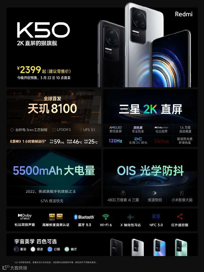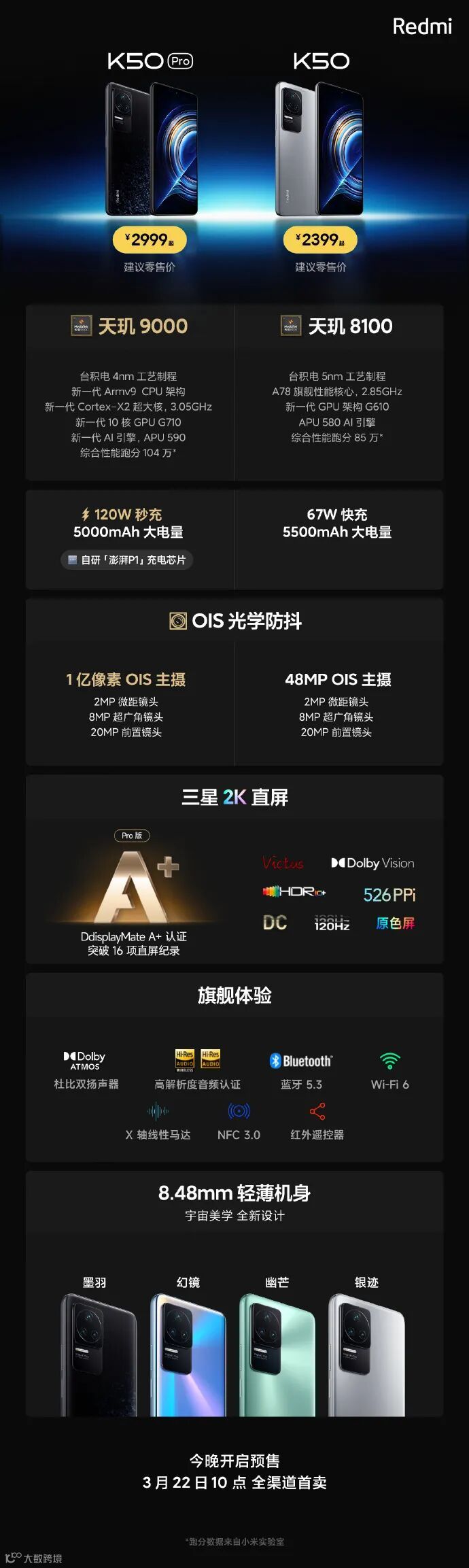 而K50系列这回更是把性价比拉满了,天玑8100/天玑9000的处理器还是很值得期待的。再加上天秀的续航表现,其他该有的也都有了,比如像X轴线性马达、红外、NFC、双扬等等。主要价格这块也太让人舒适了~