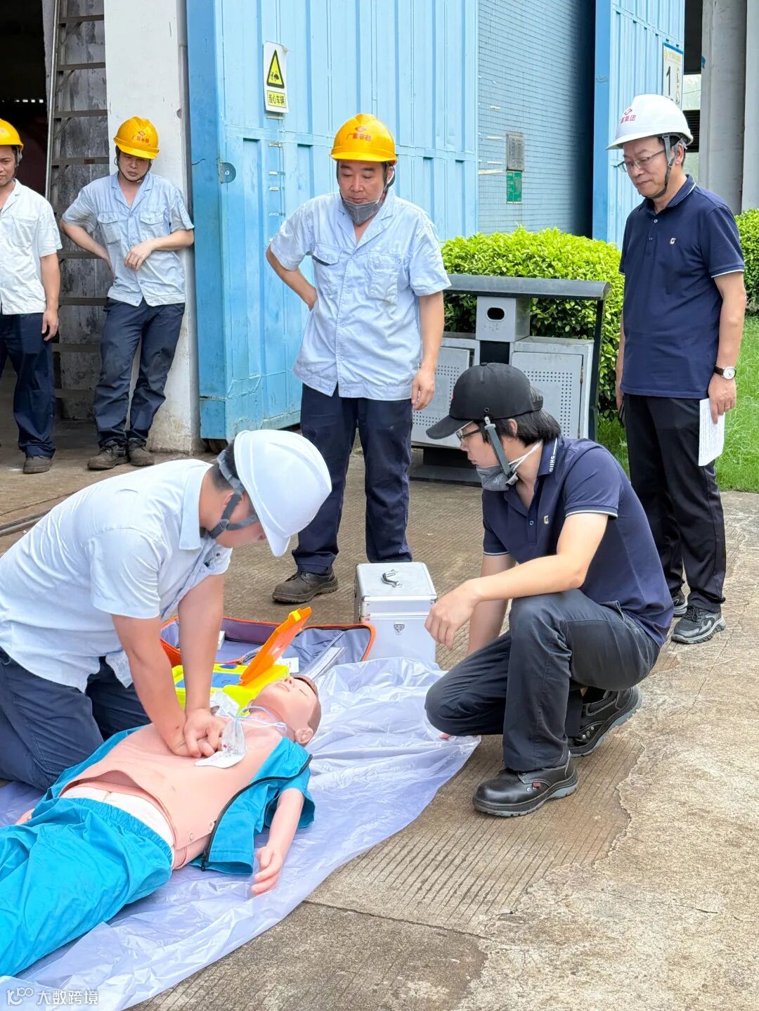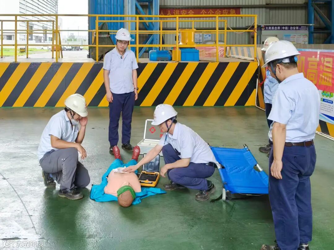 6月25日下午,广重集团南沙大岗基地也组织模拟了人员中暑晕倒事故的应急处置演练,成立了由后勤保障组、医疗救护组、警戒联络组组成的事故应急处置小组,全过程模拟了紧急救护全过程。
