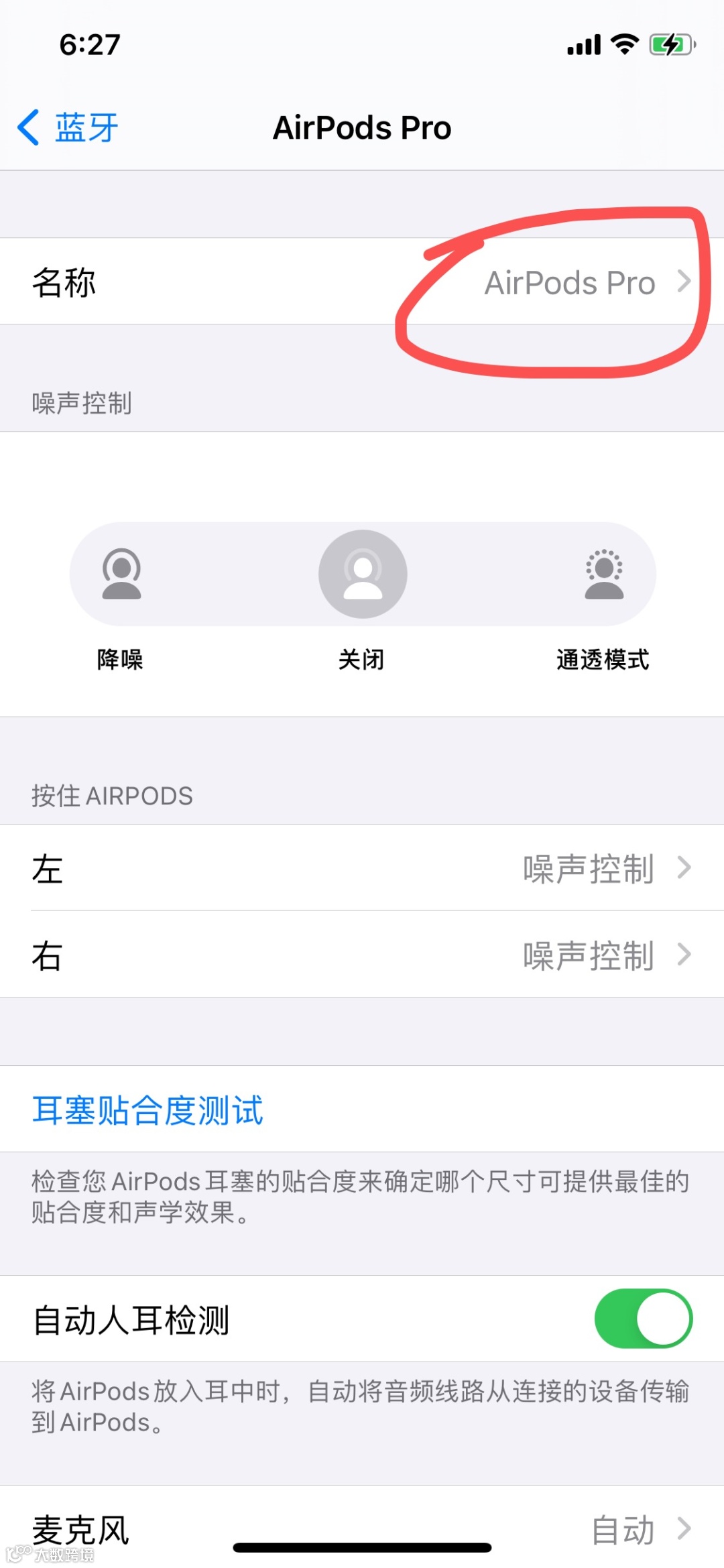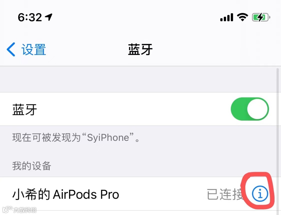 进入设置-蓝牙-点击AirPods右边的[i]