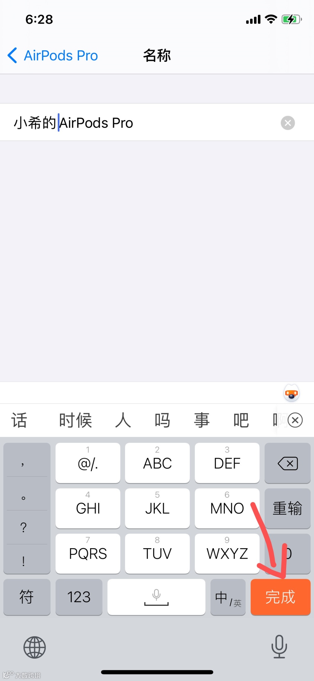 再设置自己喜欢的名字,设置好后点击键盘上的完成即可