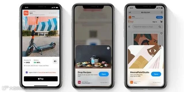 新增App Clip,该功能类似于小程序,用户无需安装应用即可快速体验应用的基础功能,支持使用Apple ID注册或登录,除了打开链接外,用户也可以通过扫码、轻触NFC等方式启用支持App Clip功能的应用。
