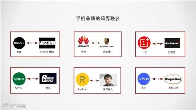 今年的联名款手机中不仅有手机品牌与汽车品牌的联合:华为&保时捷、一加&迈凯伦都受到了许多男性用户的关注。OPPO&高达吸引了更多游戏玩家的目光,荣耀&MOSCHINO通过潮牌效应让更多年轻群体将实现聚焦于荣耀,而realme与设计师深泽直人的合作,让产品外观设计再上一个台阶。最具趣味性的合作非vivo与哈根达斯莫属了,使产品的清爽定位更加清晰。