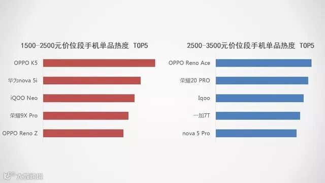 而这也在一定程度上能够推动产品升级,我们可以看到在两榜单重叠的四款手机中,除了高端机型华为Mate30 Pro以外,OPPO Reno Ace、荣耀20 PRO和Redmi K20 Pro均在产品升级上做足了功夫,高性价比突出。