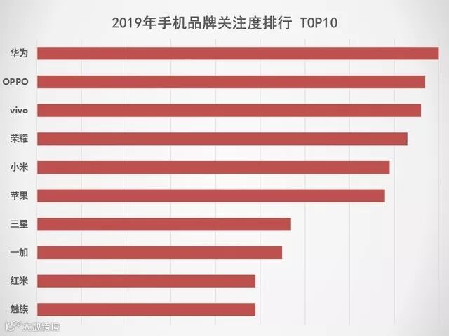 通过调研,我们将2019年手机品牌关注度进行排名,排行榜TOP10如下: