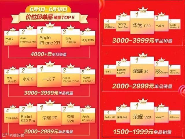 京东618的18天下来,单品销量前三名都被荣耀夺走,分别是荣耀畅玩7X、荣耀8X、荣耀畅玩8A;线上专供产品中vivo Z系列销量同比增长超200%,OPPO K3成为618期间1500-1999价位段累计销量冠军。