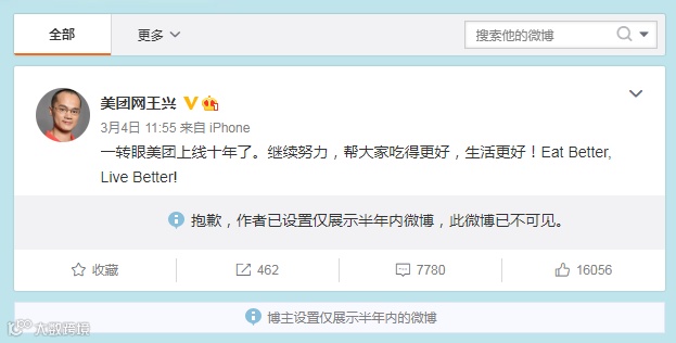 再来看看每天和我们生活息息相关的美团网创始人王兴,最近微博动态显示