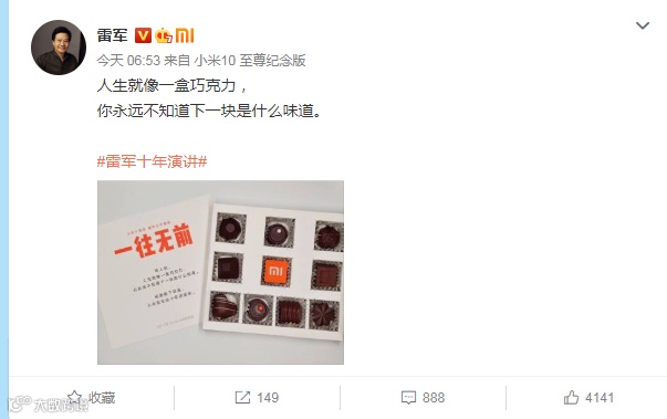 最新款华为P40 Pro+5型号,用来发布了最新的微博动态。而小米手机创始人雷军用的是即将上线的“小米10至尊纪念版”。