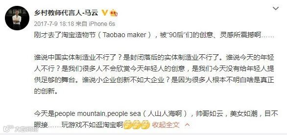 首先,互联网领军人物的马老师,虽然去年教师节那天宣布从此退休,回归教育。他说:“我知道自己不聪明,我只是干了一件自己一直都很喜欢的事而已”,不禁让人想起徐志摩的诗:“我挥一挥衣袖,不带走一片云彩”。