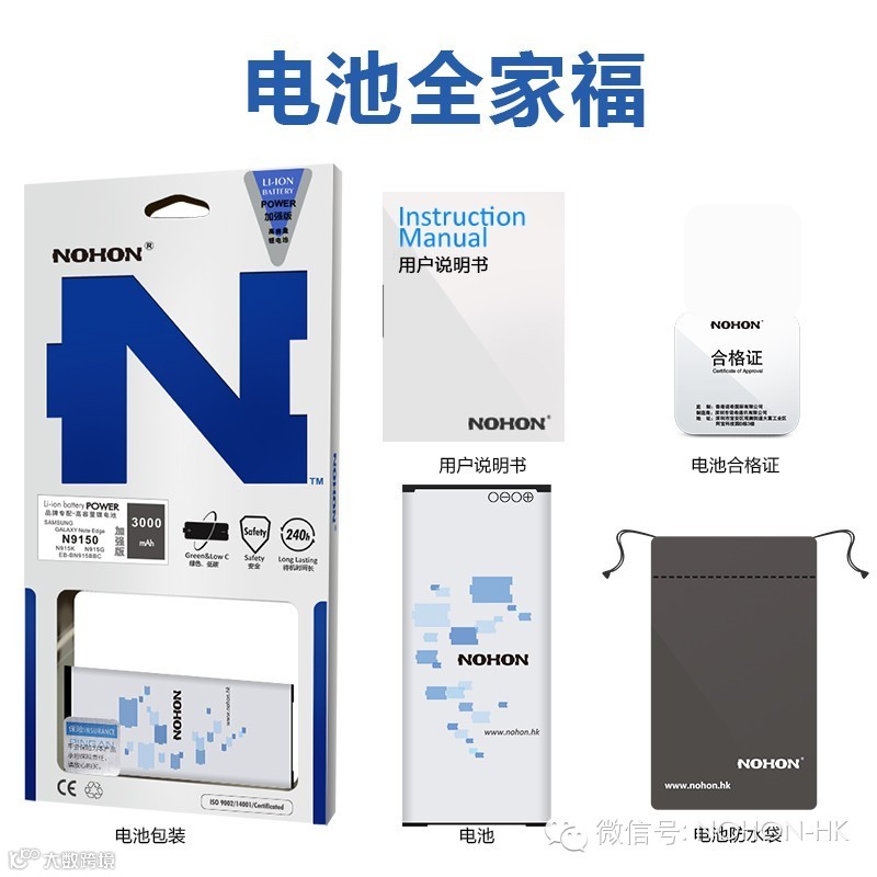 1.NOHON电池,均采用安全高容量电芯,待机时间更长,达到原装电池品质。 2.配以进口原装精工电路板,防止电池过充、短路和高压损坏电池,使用更安全。 3.一体式高温低压注塑成型,材料环保安全无毒。 4.NOHON对每一块电池均进行8道检测工序,保证产品质量安全。 5.内附使用说明书和电池便携盒,指导安全使用电池,延长使用寿命。 6.NOHON电池每块均购买保险,使用无忧。 |