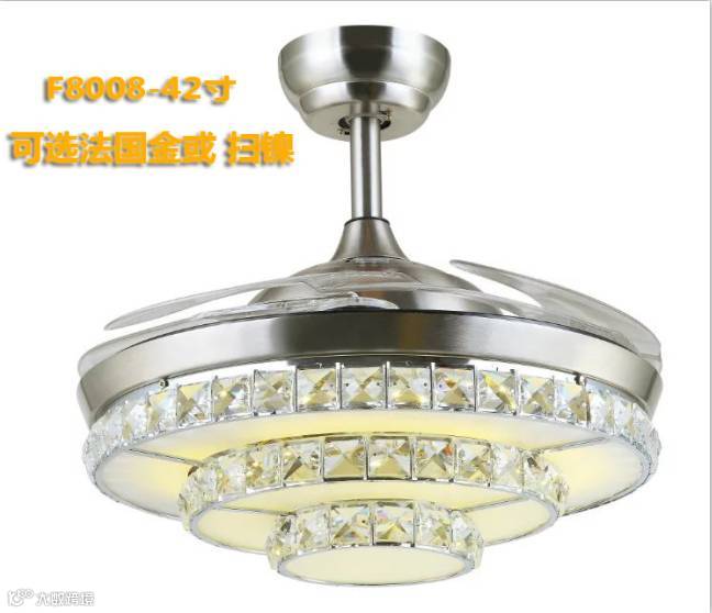 这是一款 42寸的风扇灯,风扇的扇叶在不用的时候是自动收起来的,看不到扇叶,风扇开的时候扇叶自动打开。风扇三速:高中低,遥控器控制。下面的灯的模式是三种:暖光,白光,全部亮。下面的LED灯是目前流行的星空之光,整个风扇和灯是白色,适合以白色基调为装修风格的房子。风扇和灯是同一个遥控器,但是是独立控制的,风扇可以定时后自动关停。(风扇的颜色和灯的款式有许多种可选,下面展示几款,不同款式可能价格有点差异)另外风扇下面的灯的款式可以将客户自己在其他地方发现的,尺寸合适的都可以设计安装上去。