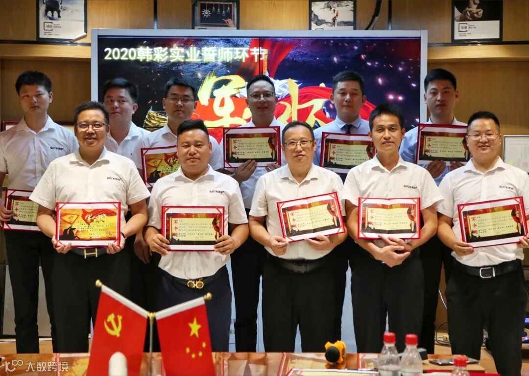 誓师环节,韩彩人扛起硬核担当,勇当热血尖兵。军令状,签下的是责任,是目标,是担当,是同事们全力以赴不服输的韧劲,是信心、勇气和力量的传递,更凸显了韩彩实业追求精益求精的态度和勇毅前行的决心。