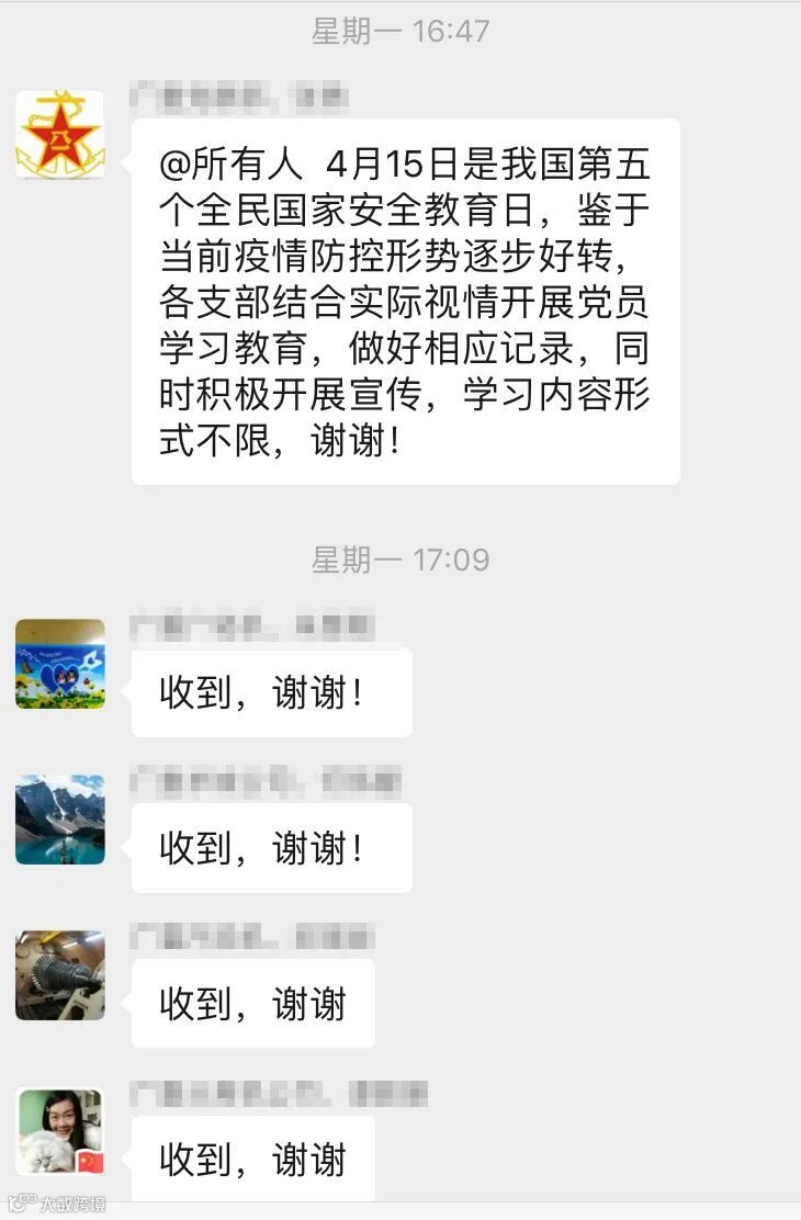 各支部高度重视,行动迅速高效,以“三会一课”、专题座谈会等形式,利用微信工作群组织学习国家安全系列法律法规、安全教育专题报道等知识,广大党员积极参与,并发表学习心得。他们表示,作为党员要加强普法学习教育,强化法治观念,树立“国家安全、人人有责”的责任意识;坚守法律底线,自觉维护国家安全,坚决向一切损害国家安全的违法行为说不;将总体国家安全观内化于心、外化于行,共同构筑捍卫国家安全的铜墙铁壁。