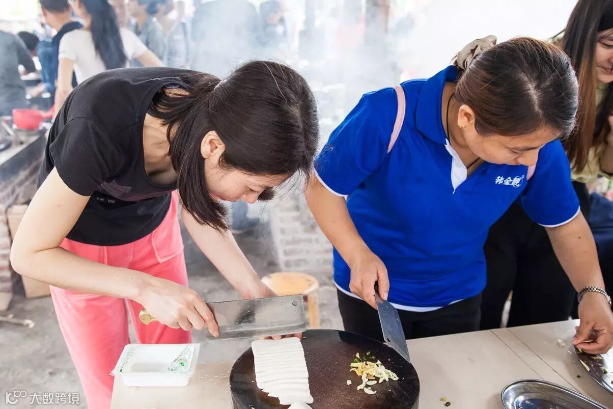 炊烟袅袅,柴米油盐,锅瓢碗筷,生火添柴,应接不暇,整个过程大家忙得不亦乐乎。相互协作,传递快乐。