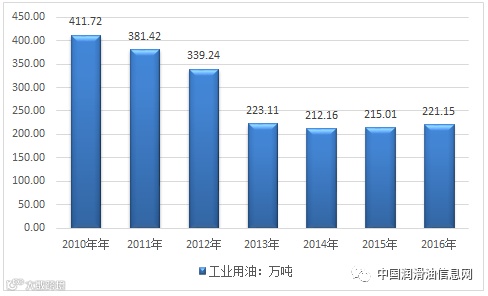进入2010年以后,采取大型投资进而刺激增长的效果越来越明显,进而引起制造业、采矿业及基建等领域增长减弱,工业润滑油消费量下降。2016年消费量221.15万吨。未来持续现状不变可能是最好的结果。相对于国产润滑油厂商的利好也许仅仅是目前国产替代随着主要用油厂商的成本意识提高,未来采用国产工业油的市场空间巨大。