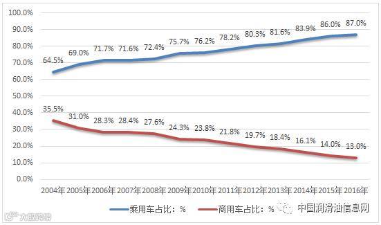 我国的汽车保有量近年来快速增长,交通用润滑油消费量逐年提升,已经成为推动润滑油消费的最主要动力。但是,受到乘用车换油周期的逐渐延长,商用车保有量增速放缓,以及摩托车保有量基本饱和等因素影响,近几年交通用油消费增速逐渐放缓。