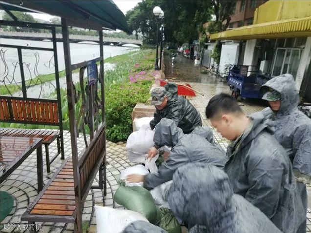 广骏集团提前开展专项安全检查,进行设施加固,隐患排查等工作,全面排查大院及周边区域防风防水隐患,并且加固门窗、拆除雨棚、疏通排水系统、搬运沙包等。