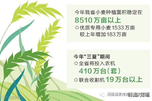 今年我省小麦种植面积继续稳定在8510万亩以上,其中优质专用小麦1533万亩,较上年增加183万亩。立春以来,全省上下狠抓麦田病虫害防治,尤其是针对小麦条锈病发病早、扩展快和赤霉病发生流行风险高的不利形势,省市县财政安排近7亿元资金支持开展大规模统防统治,全省条锈病防控面积3831万亩次,赤霉病预防面积1.04亿亩次,力度是近年来最大的一年。从目前情况看,小麦长势较好,实现高产、稳产有基础、有条件,如果后期不出现重大自然灾害,有望再获丰收。