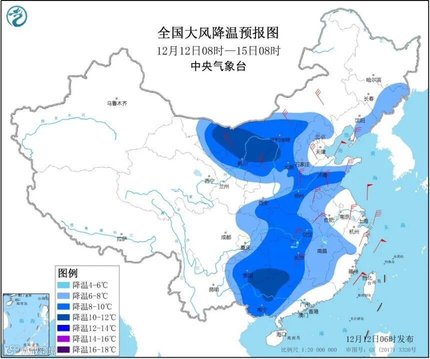 中央气象台预计,降温过后最低气温0℃线将南压至贵州南部至浙江西北部一线。北方地区有4~6级、阵风7~8级的偏北风,南方地区有4~5级偏北风,江河湖面阵风可达6~7级,近海海区有6~8级、阵风9级的偏北风。
