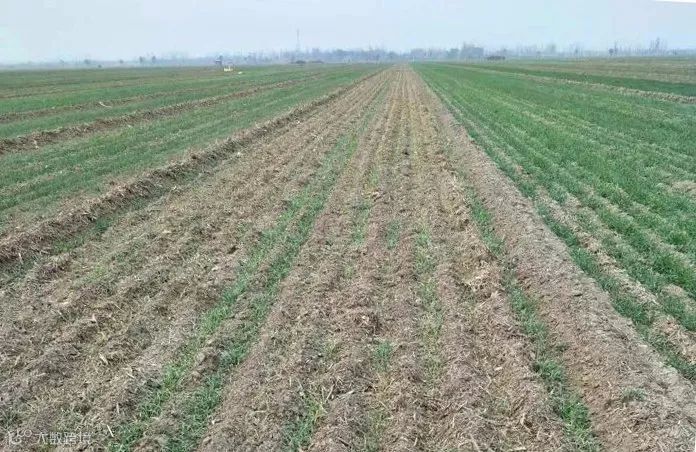 应对措施:整地前对前茬作物秸秆进行粉碎处理,粉碎长度不超过5厘米,秸秆多的地方要及时散开,深翻后掩埋,然后旋耕整地、耙实土壤,结合整地施入适量氮肥,避免秸秆腐熟过程中与麦苗争氮。