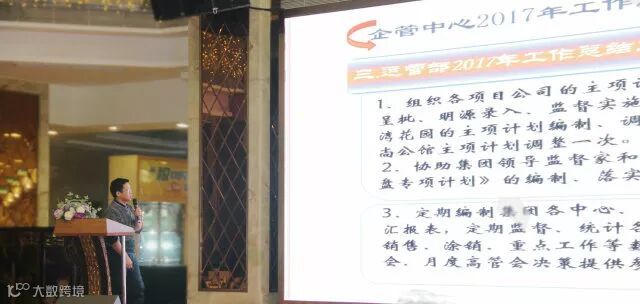 会议上,家和集团各中心、各部、项目公司及所属公司负责人对2017年度本部门、本公司工作完成情况及2018年工作计划以PPT形式进行汇报发言。