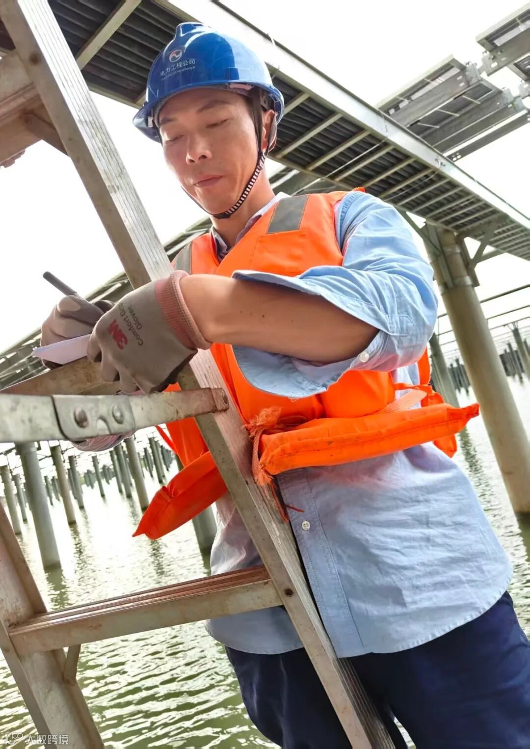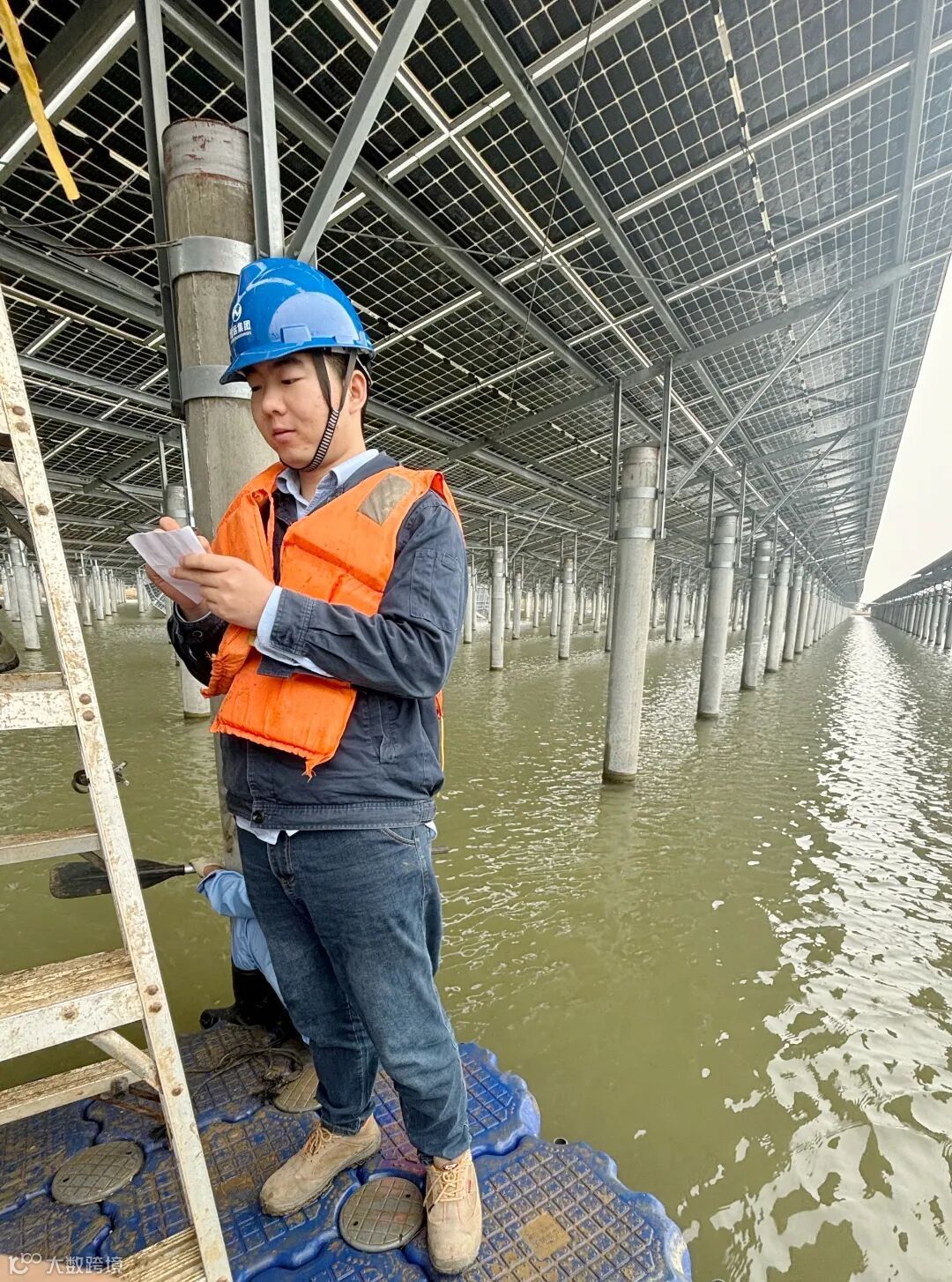 今年9月,超强台风“桦加沙”强势登陆广东,地处台风影响核心区域的江门渔光互补项目设备承受巨大考验。为全面恢复光伏发电生产能力,将台风灾害损失降至最低,江门恒光公司与时间赛跑,加急抢修;发电公司、东区气电公司派出李桂荣、黄金陶、张文豪三名技术骨干支援维护。身穿救生衣、乘船穿梭在滩涂中巡视维护光伏设备,张文豪说:“光伏设备是减碳利器,每一片光伏板材都要充分利用,尽早实现局部受损设备恢复发电能力,是我们的目标和使命”。