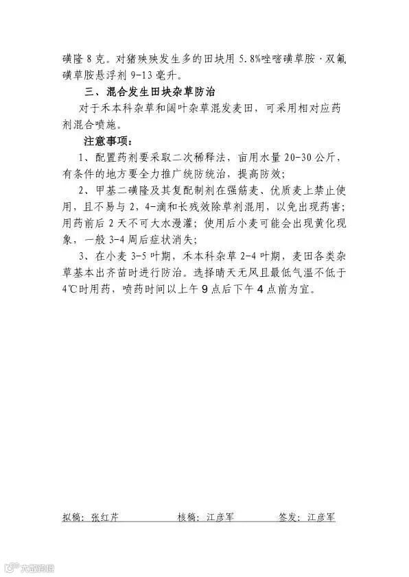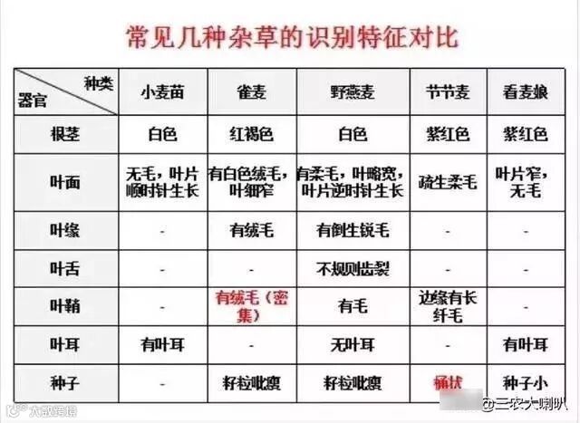 5、单一除草剂品种的长期使用,使麦田杂草群落发生了演变。本地麦田原来的主要杂草为播娘蒿、荠菜等阔叶杂草,苯磺隆系列除草剂的连续多年使用,使原来的优势种杂草得到控制,而致使节节麦等禾本科杂草逐年上升,成为当前高水肥麦田的恶性杂草。