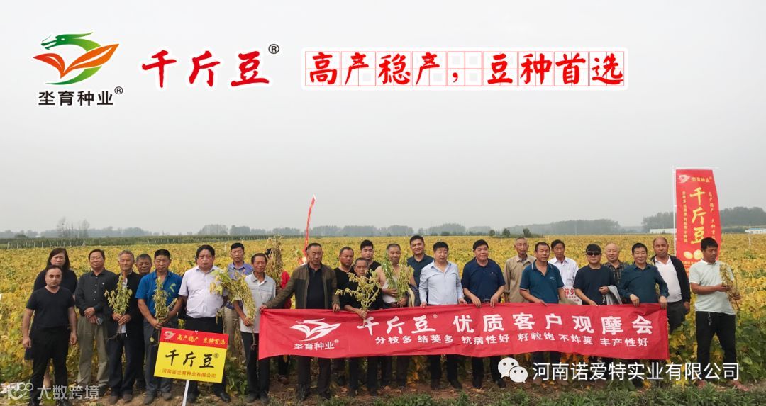 2019年9月20日河南省坔育种业有限公司培育的【千斤豆】观摩会在漯河市坡杨村举行,时逢麦种销售旺季,又在农忙秋收时节,全省各地的优秀经销商选派优秀代表,放下手中繁忙的事务,怀着一颗为农民服务的真心,秉着一个选取良好品种的信心,亲临一千三百亩千斤豆观摩基地现场,观看了豆种田间表现,见证了千斤豆的实力,纷纷取样品,拍照留念,为千斤豆代言,我们对此表示衷心的感谢!