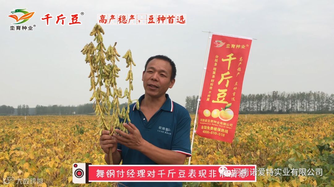 周口淮阳原种厂经理来地里看千斤豆,他表示,这个大豆确实好,名字叫做千斤豆,老百姓看了种不够!