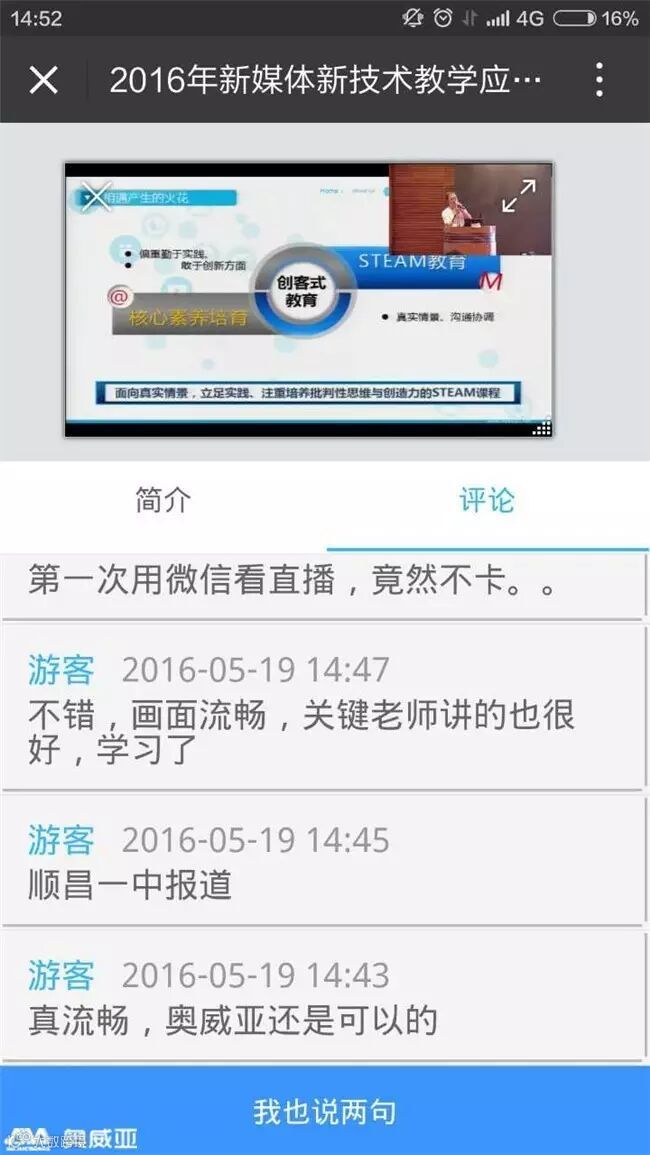近日,由中央电化教育馆主办的“2016年新媒体新技术教学应用研讨会暨第九届全国中小学创新(互动)课堂教学实践观摩活动”在福州圆满落幕。本次活动的参与人员有来自全国各省市的教师和专家共3000余人。作为国内知名的录播企业,奥威亚应邀为大会提供现场录制及公网大规模直播一体化保障支持工作。奥威亚用极致的录播服务,为全国各地的与会者提供极速播放、流畅直播的观看体验。