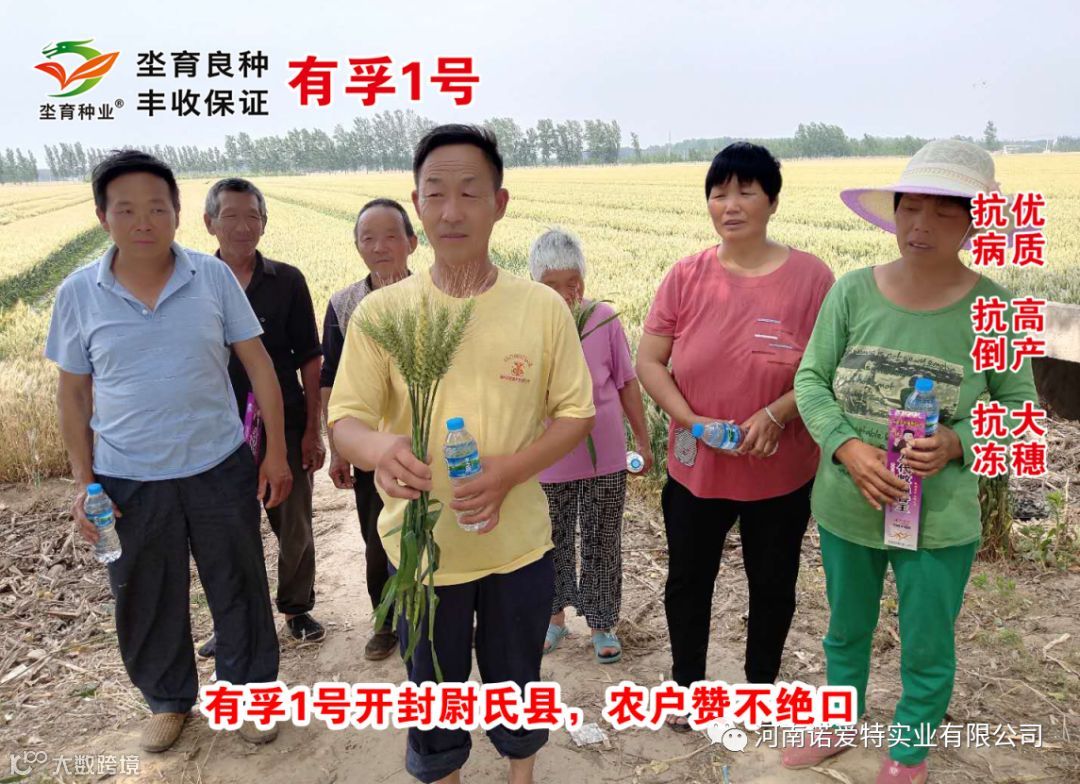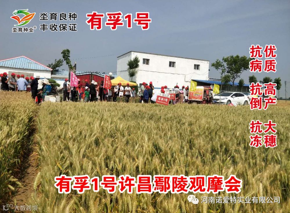 在这充满麦香的季节里,河南省坔育种业有限公司为回报广大经销商,秉承一颗为民为农的赤诚之心,在河南、安徽、山东、河北、江苏等地陆续发起了【有孚1号五月观摩展】,大小观摩会遍地开花,所到之处,人见人夸,[有孚1号]优质,高产,大穗,抗倒,抗病,抗冻六大特点,在2019年为各位经销商、代理商、种植户打了一场漂亮仗。