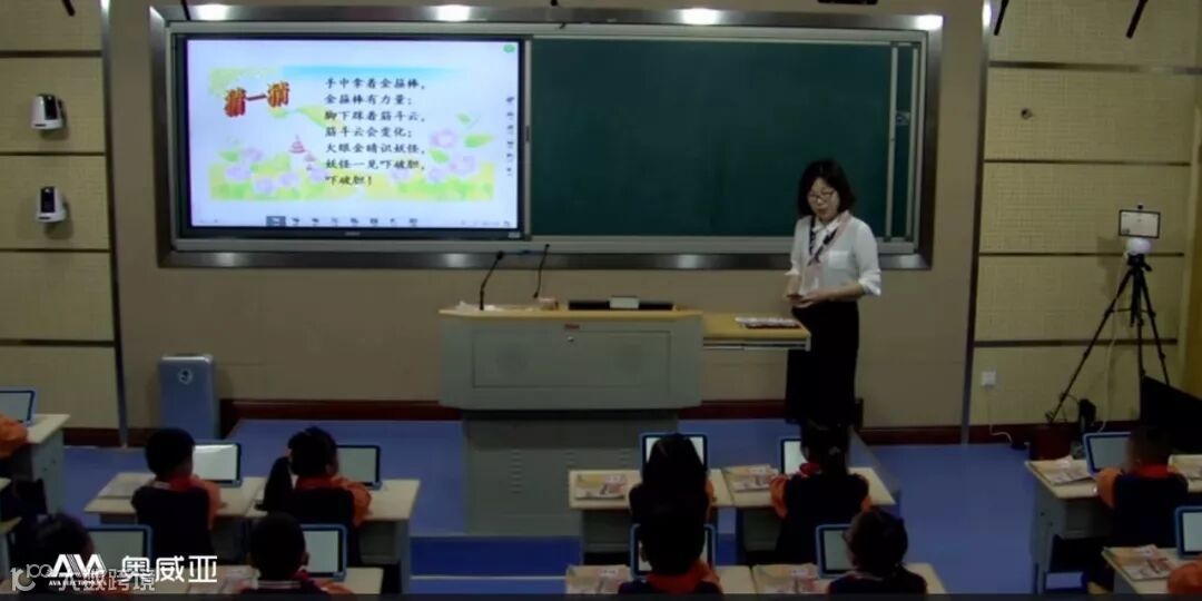 “手中拿着金箍棒,金箍棒有力量。”“有哪位同学知道,这是在说哪位人物?”“孙悟空”,学生纷纷举手抢答。在《孙悟空打妖怪》课堂上,为活跃课堂气氛,虞雅君老师采用多种朗读形式,调动学生积极性。这节发生在漓渚镇中心小学的智慧课堂,实时直播到异地专家手里。