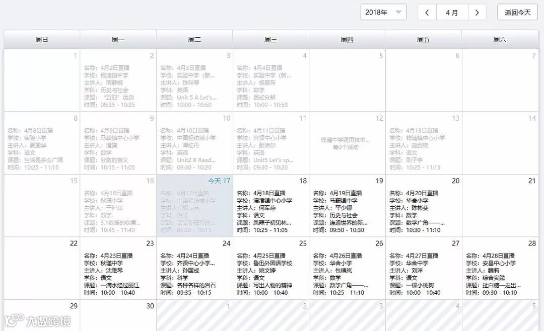 天天直播让更多的学校、教师参与到智慧课堂中。活动的开展,有利于实现优课资源积累,也为教师课堂教学行为分析,提供大数据支持。