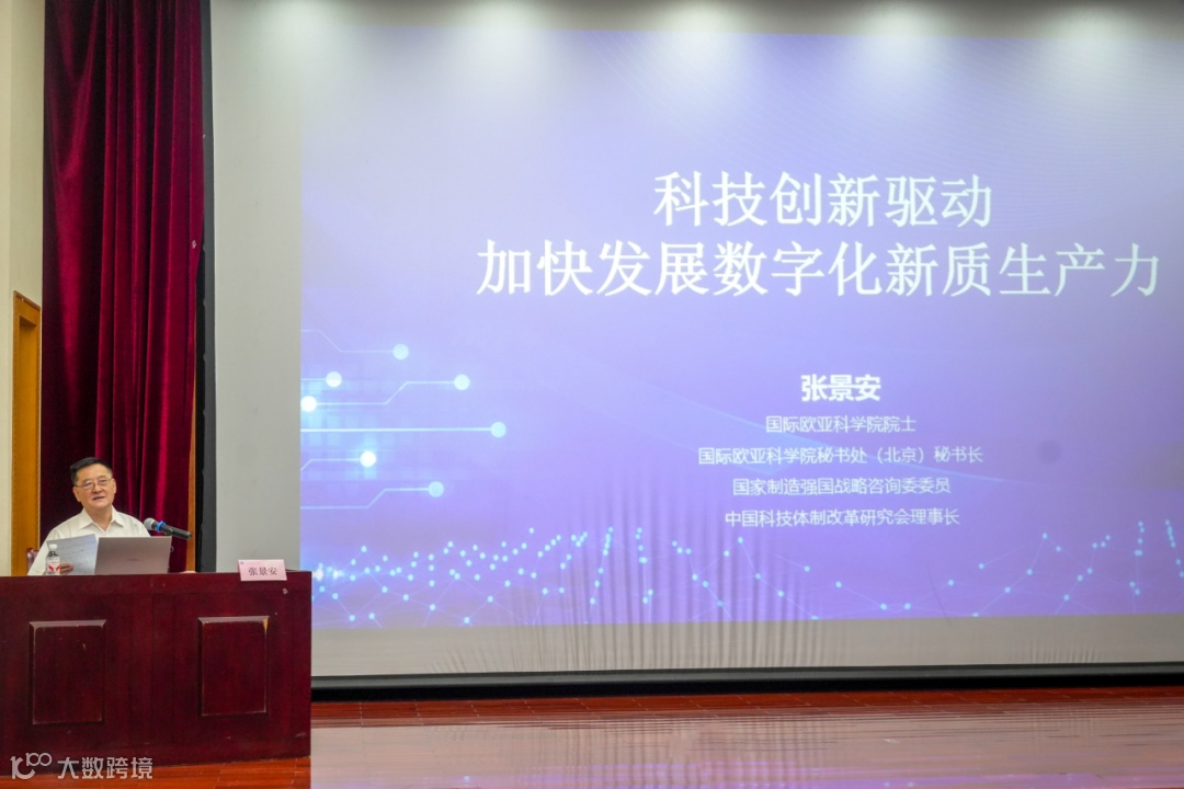 张景安作《科技创新驱动,加快发展数字化新质生产力》报告。他简要回顾了我国科技体制改革历程,以新三样扬帆出海、前沿创新三大奇迹、北斗卫星导航系统等实例阐述培育发展新质生产力,指出要把握新技术和产业变革机遇,整合科技创新资源,优化科技创新体系,促进科技创新与产业创新协同发展,并对省科学院推动创新平台的数字化、生态化发展提出宝贵建议。