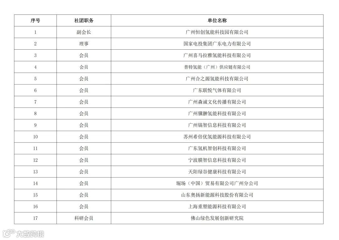 祝贺以下单位成为联合会新会员,共助广州市氢能产业的发展。