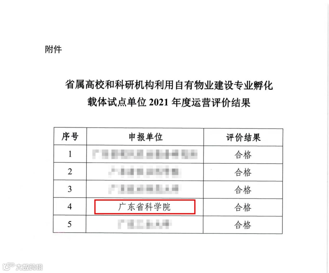 广东省科学院作为首批省属高校和科研机构利用自有物业建设专业孵化载体的试点单位,围绕试点工作要求总体布局、统一部署。广科双创产业发展(广州)有限公司作为省科学院指定的孵化载体(即“广科双创园”)运营机构在省科学院和广科控股领导的高度重视,广东省科学院生物与医学工程研究所、广东省科学院新材料研究所等院属机构的大力支持之下,顺利通过省科技厅和省财政厅联合组织开展的试点单位2021年度运营评价考核。