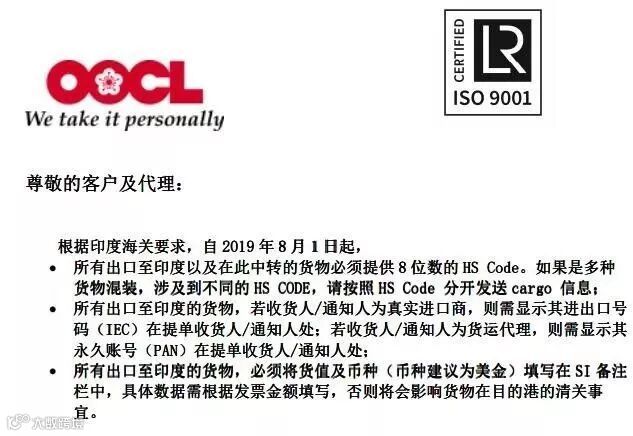 8月1日起,多项海关、航运新规实施!牵涉到报关电子委托书、印度舱单新政、Form E改版、VGM&危险品申报等多项内容!